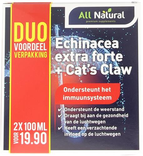 - Bij Vitadvice kun je All Natural Echinacea Extra Forte & Cats Claw Duoset 200ML kopen voor de prijs van € 16,96. Dit is vandaag de goedkoopste webshop.