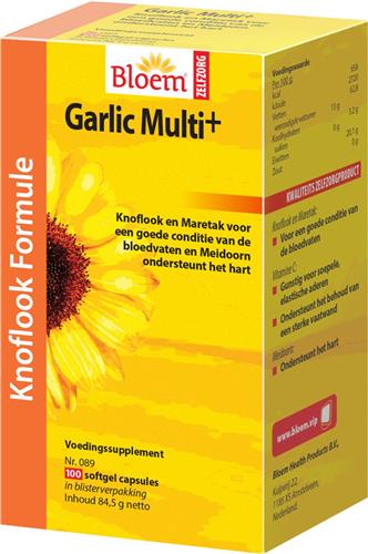 - Bij Vitadvice kun je Bloem Garlic Multi+ - 100 capsules - Voedingssupplement kopen voor de prijs van € 18,54. Dit is vandaag de goedkoopste webshop.