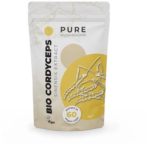 Geniet van de voordelen van Pure Mushrooms Cordyceps Bio met deze extract capsules. Dit voedingssupplement is vervaardigd uit de Cordyceps Sinensis paddenstoel, rijk aan cordycepine, cordycepszuren en polysachariden. Elke capsule bevat 320 mg Cordyceps extract en is aangevuld met acerola extract voor een extra dosis vitamine C.