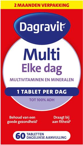 - Bij Bol.com kun je Dagravit Multi Elke Dag - Multivitaminen en mineralen - Behoud van een goede gezondheid (1) - Draagt bij aan fitheid (2) - 1 tablet per dag - 60 tabletten kopen voor de prijs van € 11,00. Dit is vandaag de goedkoopste webshop.