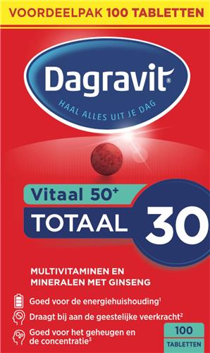 - Bij Bol.com kun je Dagravit Totaal 30 Vitaal 50+ Multivitaminen voordeelverpakking - Vitamine B1, B2, B3, B5, B6, B12 en koper dragen bij aan een goede energiehuishouding - 100 tabletten kopen voor de prijs van € 13,24. Dit is vandaag de goedkoopste webshop.