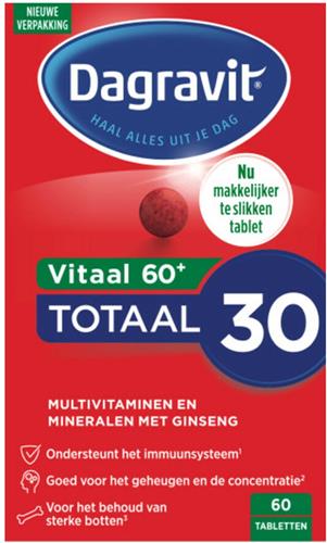 - Bij Bol.com kun je Dagravit Vitaal 60+ Multivitaminen - Ondersteunt het immuunsysteem (1) - 60 tabletten kopen voor de prijs van € 12,86. Dit is vandaag de goedkoopste webshop.