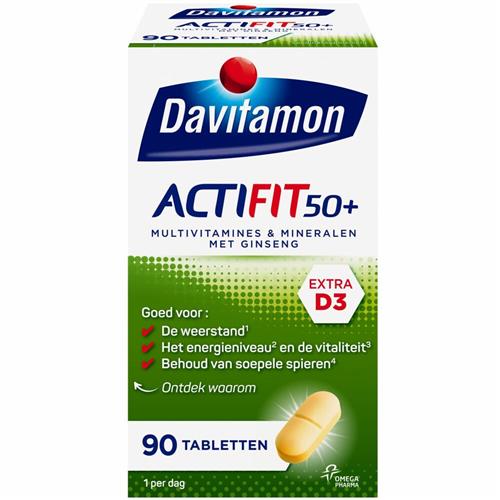 - Bij Bol.com kun je Davitamon Actifit 50+ met Ginseng - Multivitamine voor 50 plussers - 90 Tabletten - Voedingssupplement kopen voor de prijs van € 19,99. Dit is vandaag de goedkoopste webshop.
