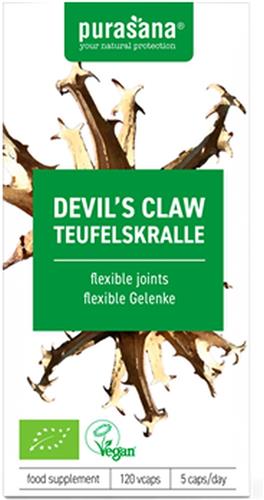 | Ingrediënten | 120 capsules van300 mg duivelsklauw (Harpagophytum procumbens) Ingrediënten: duivelsklauw (Harpagophytum procumbens), Hydroxypropylmethylcellulose (HPMC). |