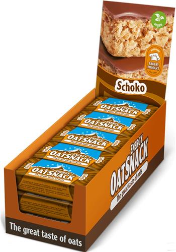 | Voedingswaarde | Per serving: 65 g | Energie 1183 kj / 283 kcal, Vet 13 g 5,2 g (Waarvan verzadigde vetzuren, Koolhydraten 36 g 18 g, Waarvan suikers, Vezels 2,9 g, Eiwitten 4,0 g, Zout 0,11 g) Haver(48%), gedeeltelijk geïnverteerde suikerstroopkaramel, plantaardige margarine (palmolie, raapzaadolie, water, emulgator: mono- en diglyceriden van vetzuren), donkere chocolade smaak topping (9%) (suiker, palmolie, zoete wheypoeder, (melk ), tarwebloem, vet gereduceerd cacaopoeder, emulgatoren: sojalecithine & polyglycerol polyricinoleaat en natuurlijk aroma). |
