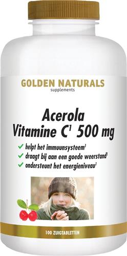 - Bij Bol.com kun je Golden Naturals Acerola Vitamine C 500mg (100 veganistische zuigtabletten) kopen voor de prijs van € 19,95. Dit is vandaag de goedkoopste webshop.