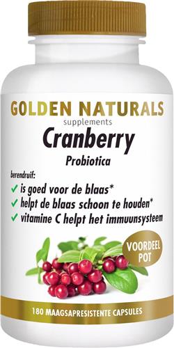 - Bij Bol.com kun je Golden Naturals Cranberry & Probiotica (180 veganistische maagsapresistente capsules) kopen voor de prijs van € 50,90. Dit is vandaag de goedkoopste webshop.