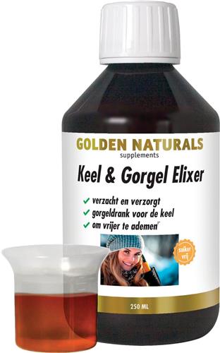 - Bij Bol.com kun je Golden Naturals Keel & Gorgel Elixer (250 milliliter) kopen voor de prijs van € 16,95. Dit is vandaag de goedkoopste webshop.