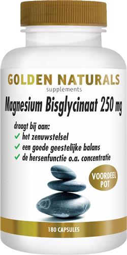 - De goedkoopste webshop om Golden Naturals Magnesium Bisglycinaat 250mg (180 veganistische capsules) te kopen is voor het laatst gecontroleerd op vrijdag 24 oktober 2025.