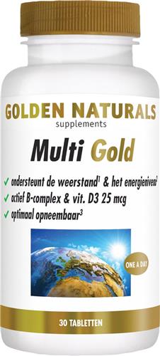 - Bij Vitadvice kun je Golden Naturals Multi Gold (30 vegetarische tabletten) kopen voor de prijs van € 19,95. Dit is vandaag de goedkoopste webshop.