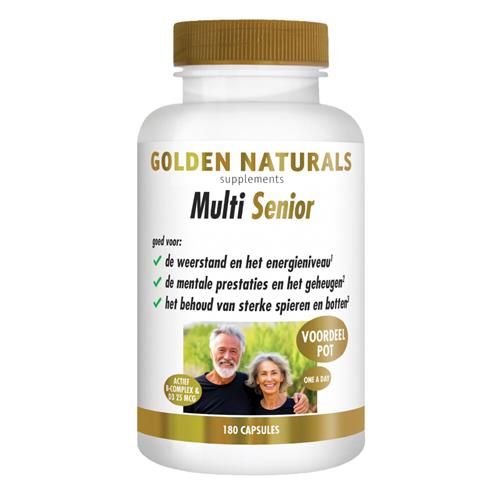 - Bij Bol.com kun je Golden Naturals Multi Senior (180 vegetarische capsules) kopen voor de prijs van € 58,29. Dit is vandaag de goedkoopste webshop.