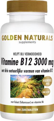 - Bij Bol.com kun je Golden Naturals Vitamine B12 3000mcg (180 veganistische zuigtabletten) kopen voor de prijs van € 36,90. Dit is vandaag de goedkoopste webshop.
