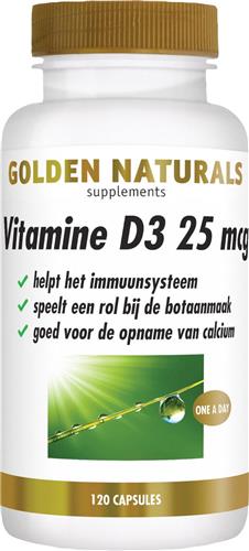 - De goedkoopste webshop om Golden Naturals Vitamine D3 25 mcg (120 softgel capsules) te kopen is voor het laatst gecontroleerd op dinsdag 7 oktober 2025.