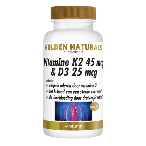- Bij Bol.com kun je Golden Naturals Vitamine K2 45 mcg & D3 25 mcg (60 vegetarische tabletten) kopen voor de prijs van € 17,21. Dit is vandaag de goedkoopste webshop.