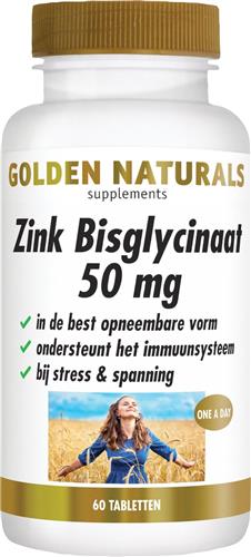 - De goedkoopste webshop om Golden Naturals Zink Bisglycinaat 50mg (60 veganistische tabletten) te kopen is voor het laatst gecontroleerd op dinsdag 7 oktober 2025.