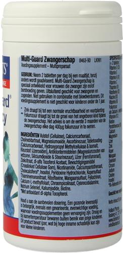 | Gebruiksaanwijzing | Gebruik Neem 2 tabletten per dag bij een maaltijd, tenzij anders wordt geadviseerd. Multi-Guard Zwangerschap is speciaal ontwikkeld voor vrouwen die zwanger zijn en/of borstvoeding geven. Uitsluitend geschikt voor zwangeren en zogenden. Niet gebruiken in combinatie met bloedverdunners. Dit voedingssupplement is niet geschikt voor kinderen onder de 1 jaar. |