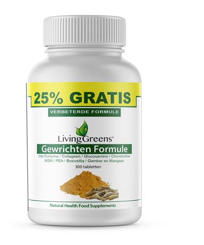 - Op dit moment is LivingGreens-Gewrichten formule-240+60 GRATIS tabletten gratis-Curcuma en Collageen-Chondroitine-Glucosamine-MSM-Collageen type 2-PEA-Palmitoylethanolamide-Boswellia-Gember-Ribus nigrum-Salix alva-Bamboo-Heermoes-Equisetum-Bioperine in de aanbieding bij Bol.com. Profiteer van deze aanbieding!