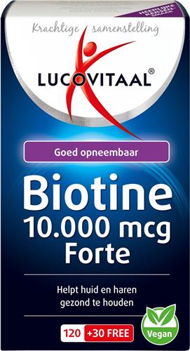 - Bij Bol.com kun je Lucovitaal Biotine 10.000 mcg Forte 150 zuigtabletten kopen voor de prijs van € 16,40. Dit is vandaag de goedkoopste webshop.