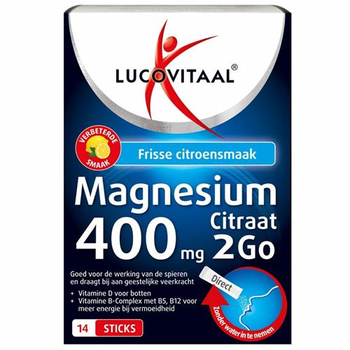 - Bij Vitadvice kun je Lucovitaal Magnesium 400mg 2Go 14 sachets kopen voor de prijs van € 6,19. Dit is vandaag de goedkoopste webshop.