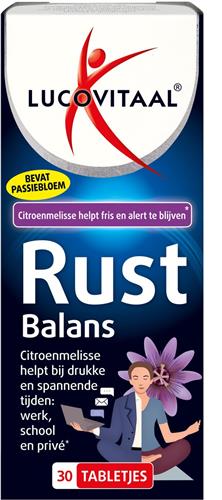 - Bij Vitadvice kun je Lucovitaal Rust Balans Citroenmelisse 30Tab kopen voor de prijs van € 6,19. Dit is vandaag de goedkoopste webshop.