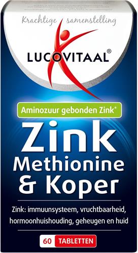 - Bij Bol.com kun je Lucovitaal Zink Methionine & Koper Voedingssupplement - 60 tabletten kopen voor de prijs van € 6,00. Dit is vandaag de goedkoopste webshop.