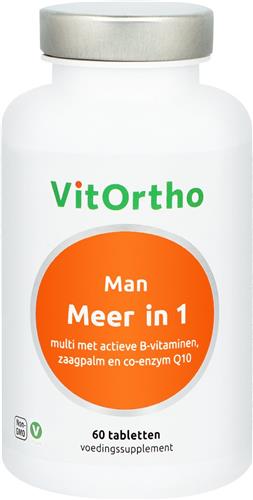 Meer-in-1 Man wordt geproduceerd door VitOrtho, een betrouwbare fabrikant van hoogwaardige voedingssupplementen. Het product is geschikt voor vegetariërs en wordt vervaardigd in Europa. Bewaar de tabletten op een koele, droge plaats bij kamertemperatuur. Raadpleeg voor gebruik altijd een specialist bij zwangerschap, borstvoeding, medicijngebruik of ziekte.