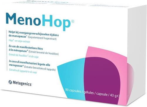 Menohop® is een voedingssupplement dat speciaal is ontwikkeld om vrouwen te ondersteunen bij overgangsverschijnselen tijdens de menopauze. De formule bevat Humulus Lupulus, een extract dat bekend staat om zijn weldadige werking tijdens deze fase van het vrouwelijk lichaam. Met Menohop 90 Capsules van Metagenics kunt u op een natuurlijke manier verlichting vinden van diverse symptomen die optreden tijdens de menopauze.