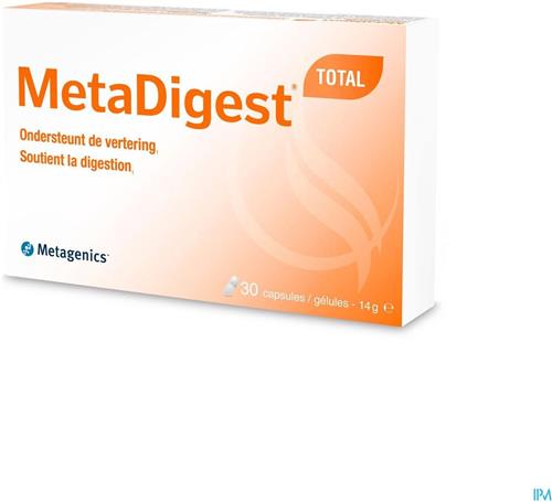 - Bij PharmaMarket kun je Metagenics Metadigest Total 30 capsules kopen voor de prijs van € 15,37. Dit is vandaag de goedkoopste webshop.