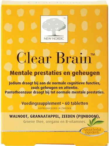 Een van de belangrijkste ingrediënten in Clear Brain is jodium, dat bijdraagt aan de normale cognitieve functies en de concentratie verbetert, zelfs bij grote geestelijke inspanning. Daarnaast ondersteunen vitaminen zoals B1, B2, B3, B6 en B12 het goed functioneren van het zenuwstelsel en dragen ze bij aan het verminderen van vermoeidheid.