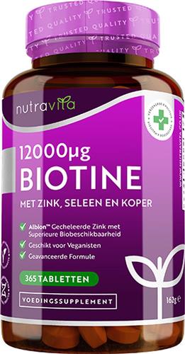 - Bij Bol.com kun je Nutravita Biotine haargroei supplement 12000mcg met zink, selenium en koper - Hoge Dosering Vegan biotine tabletten - ondersteunt de haar-, huid- en nagelgroei - jaarvoorraad 365 kopen voor de prijs van € 16,15. Dit is vandaag de goedkoopste webshop.