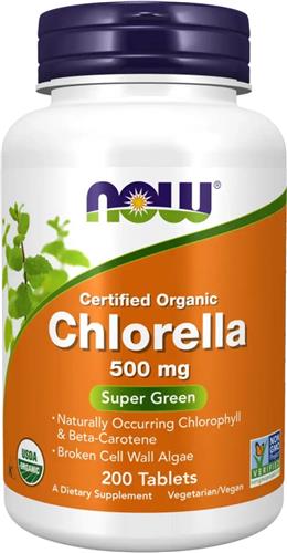 Organische Chlorella 500 mg van Now Foods is wereldwijd bekend als 's werelds beste Green Superfood! Deze eencellige groene alg zit boordevol voedingsstoffen en bevat het hoogste gehalte aan chlorofyl van alle planten op aarde. Daarnaast is Chlorella 500 mg verrijkt met vitamine C, wat bijdraagt aan een normaal energieleverend metabolisme.