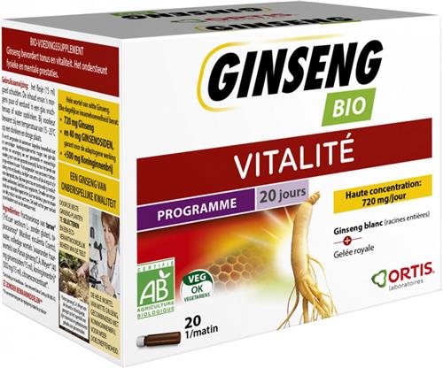 - Bij PharmaMarket kun je Ortis Ginseng Organic Vitality 20 Flesjes kopen voor de prijs van € 29,25. Dit is vandaag de goedkoopste webshop.