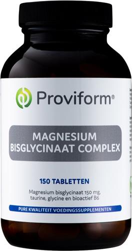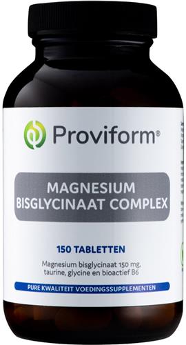 Proviform Magnesium Bisglycinaat Complex is een hoogwaardig voedingssupplement van pure kwaliteit op basis van 150mg magnesium. De formule bevat magnesium in de vorm bisglycinaat, wat zorgt voor een hoge biologische beschikbaarheid. Naast magnesium is het supplement verrijkt met taurine en glycine om de werking van magnesium te versterken. Bovendien bevat het actief vitamine B6 voor een betere opneembaarheid.