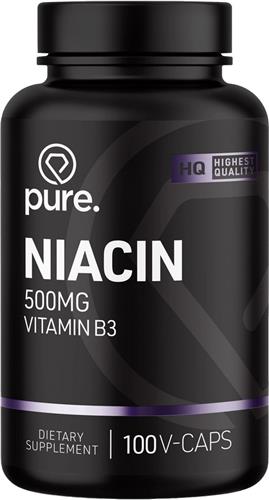 - Bij Bol.com kun je Pure. Niacine - Vitamine B3 - 100 vegan capsules - 500mg kopen voor de prijs van € 12,90. Dit is vandaag de goedkoopste webshop.