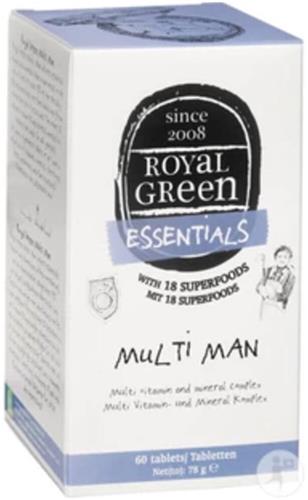 - Bij Bol.com kun je Royal Green Voedingssupplementen Royal Green Multi man 60tab kopen voor de prijs van € 33,20. Dit is vandaag de goedkoopste webshop.