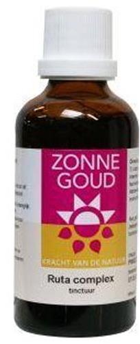 Ruta Complex Zonnegoud is een kruidenpreparaat dat ingrediënten bevat zoals Wijnruit, Valeriaan en Oranjeappel. Deze tinctuur is verrijkt met water en alcohol van 54,3% vol. Het wordt aanbevolen om 3 maal daags 15 tot 20 druppels van dit supplement in te nemen, bij voorkeur met water. Voor kinderen geldt een dosering die overeenkomt met hun leeftijd. Zwangere vrouwen en vrouwen die borstvoeding geven dienen dit product niet te gebruiken, tenzij voorgeschreven door een arts.