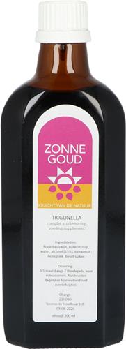 Zonnegoud Trigonella Complex Wijntonicum is een kruidenpreparaat dat rode basiswijn, suikerstroop, water, alcohol (13,7%) en extract uit fenegriek bevat. Dit supplement dient 3-5 keer per dag ingenomen te worden, waarbij volwassenen 2 theelepels per keer kunnen nemen en kinderen 1 theelepel per keer. Het wordt aangeraden om dit product op een droge, donkere en afgesloten plek te bewaren. Let op: niet gebruiken tijdens zwangerschap of borstvoeding, tenzij voorgeschreven door een arts.