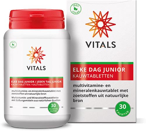 - Bij Plein kun je Vitals - Elke Dag Junior -kindermulti - 30 kauwtabletten - aardbeiensmaak - met zoetstoffen uit natuurlijke bron kopen voor de prijs van € 12,75. Dit is vandaag de goedkoopste webshop.