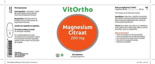 Controleer altijd voor aankoop de specificaties op de website van de webwinkel waar je VitOrtho Magnesium citraat 200 mg (250tb) aankoopt