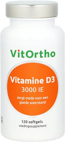 Ontdek de krachtige ondersteuning van VitOrtho Vitamine D3 3000 IE in de vorm van 120 softgels. Deze extra hoge dosering vitamine D3 is opgelost in GMO-vrije sojaolie voor een optimale opname in het lichaam. Vitamine D speelt een essentiële rol bij het behoud van sterke botten en tanden, en heeft ook een gunstige invloed op het celdelingsproces. Bovendien draagt vitamine D bij aan een normale werking van de spieren en helpt het immuunsysteem, waardoor het je weerstand een boost geeft.